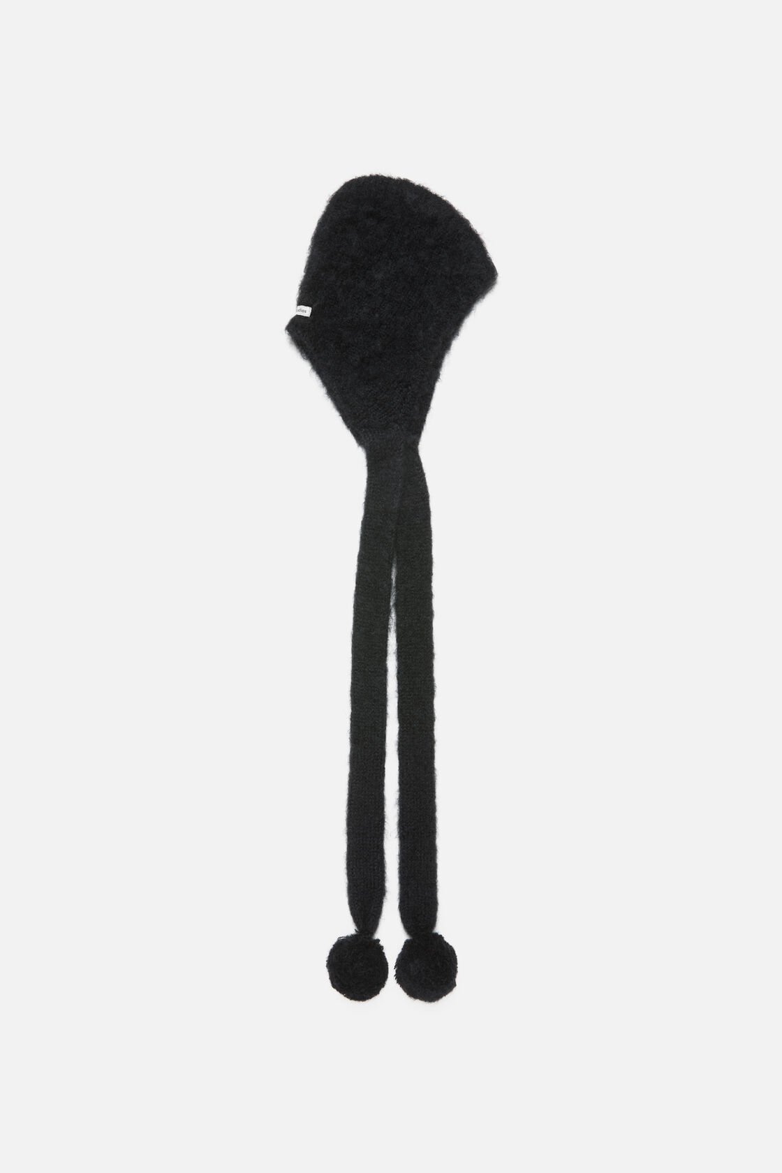 Cap with earflaps, crafted from soft ribbed mohair blend and detailed with pom poms on ends.