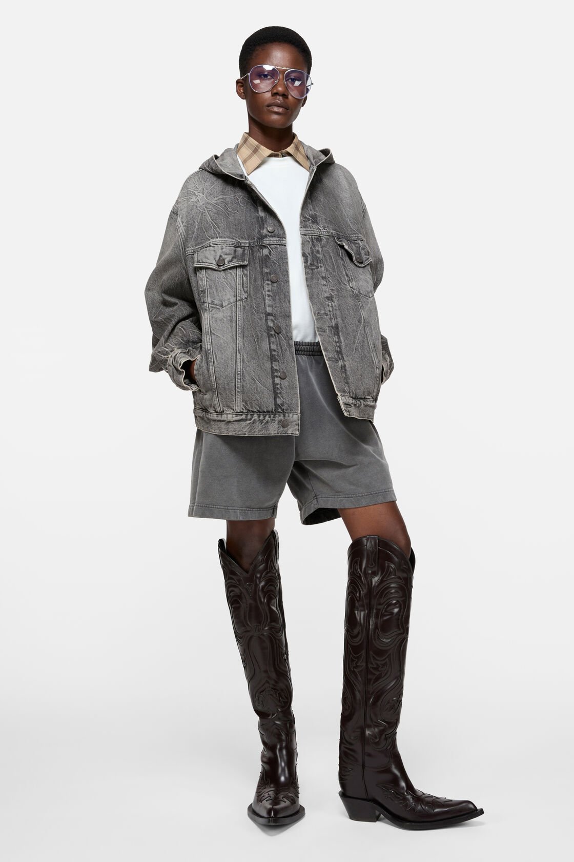 - Hooded denim jacket