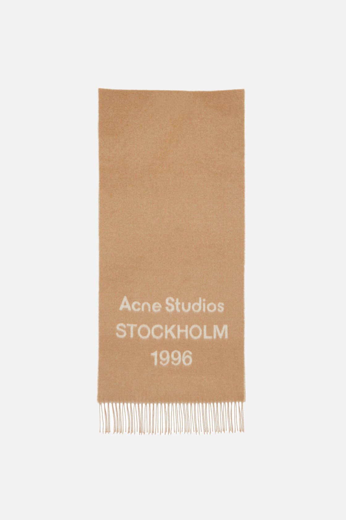 Fringe scarf features the Acne Studios logo and is crafted from wool jacquard with a soft hand-feel.